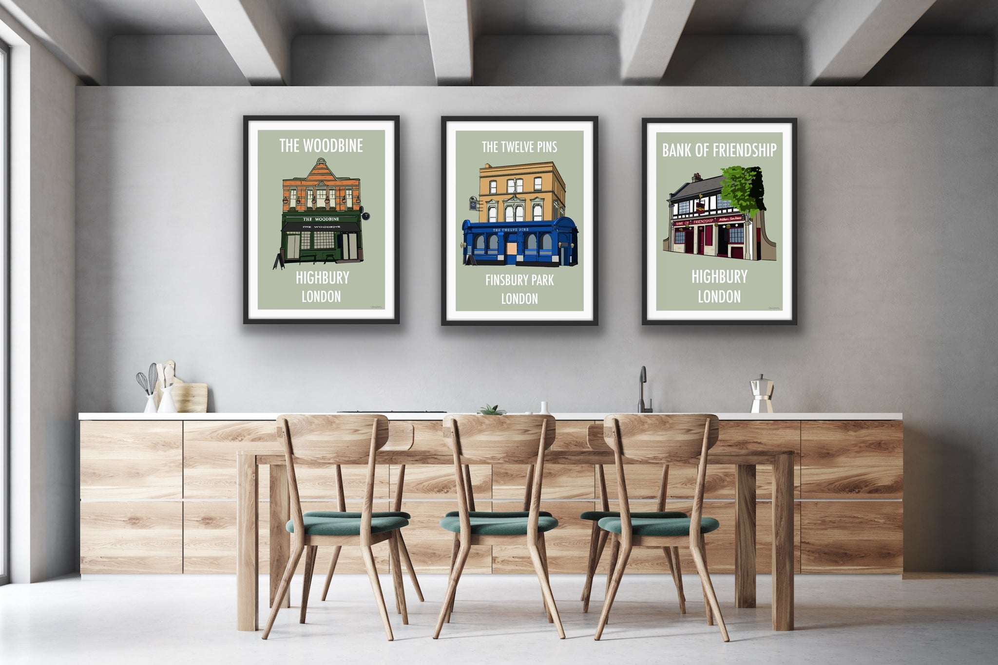 Digitally hand drawn artwork of one of Highbury’s most popular Irish and Arsenal pubs.