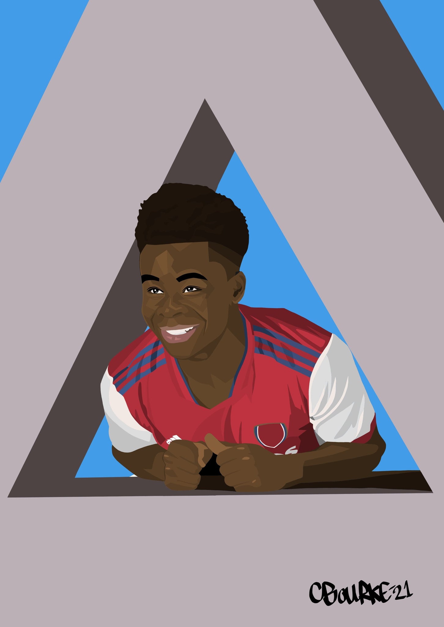 Saka digital illustration, as seen in the new home kit launch.